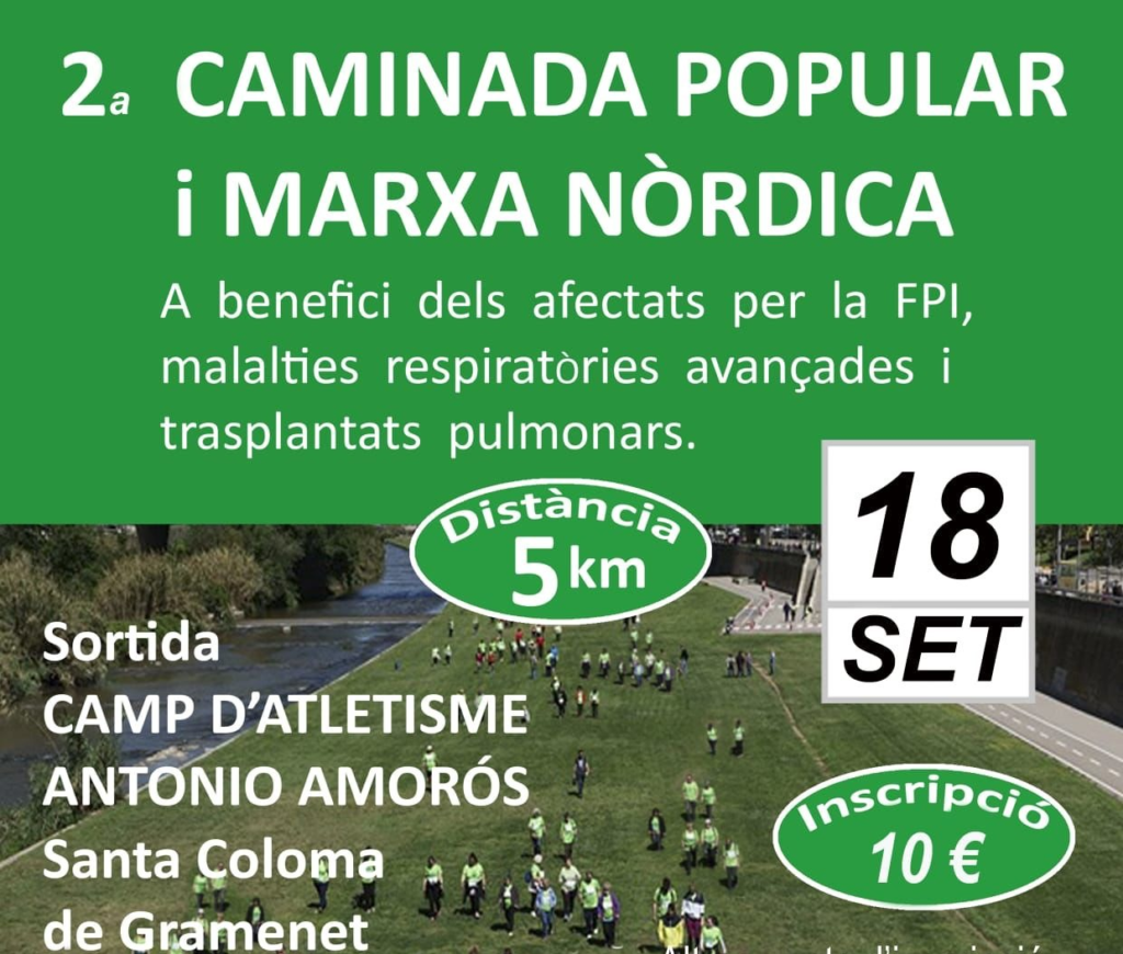 18 DE SEPTIEMBRE: los compañeros de aire organizan la 2ª caminata solidaria de marcha nórdica La ath.cat se adhiere a esta actividad en beneficio de los enfermos pulmonares y trasplantados. Todos estamos invitados: socios y socias, familiares, amigos, amigos...