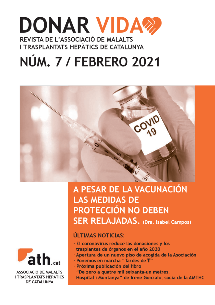 Publicación de la revista DONAR VIDA NÚM. 7 / FEBRERO 2021 Encontrarás información de las principales actividades llevadas a cabo en 2020, de diversos temas de la Asociación y dos entrevistas a socios que comparten aspectos de su vida. El Dr. Enric Contreras...
