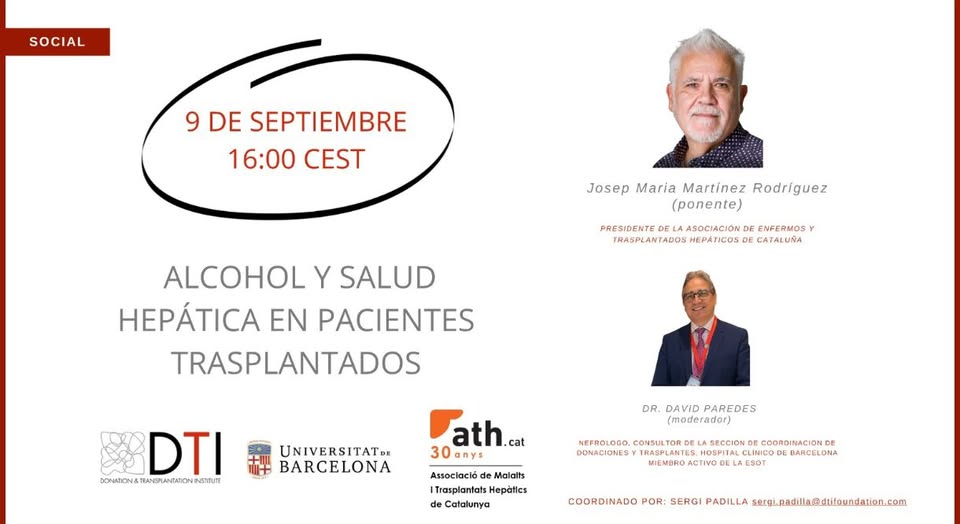El passat 9 de setembre, l’Associació de Malalts i Trasplantats Hepàtics de Catalunya (AMTHC) va participar en un webinar de sensibilització sobre un tema de gran importància: el consum d’alcohol i la seva relació amb la salut hepàtica en pacients trasplantats.